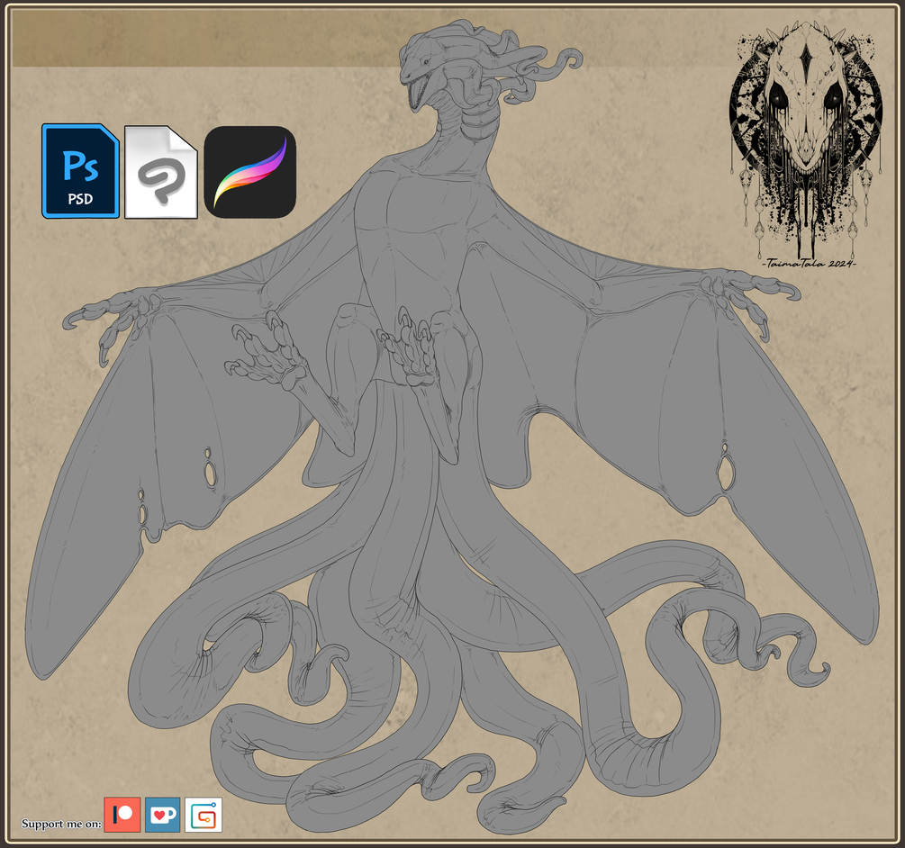 You will get a Water Creature/ Wyvern template Full Body, PSD file